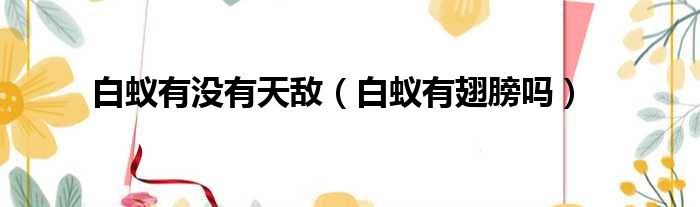 大家好,小活来为大家解答以上问题。白蚁有没有天敌,白蚁有翅膀吗很多人还不知道,现在让我们一起来看看吧!