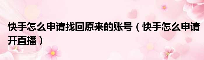 快手怎么申请找回原来的账号(快手怎么申请开直播)