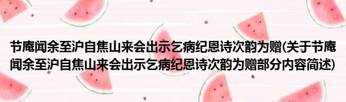 节庵闻余至沪自焦山来会出示乞病纪恩诗次韵为赠(关于节庵闻余至沪自焦山来会出示乞病纪恩诗次韵为赠部分内容简述)