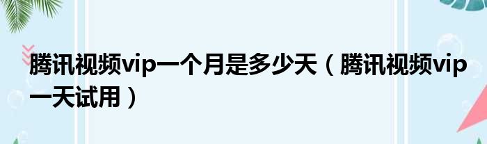 腾讯视频vip一个月是多少天(腾讯视频vip一天试用)