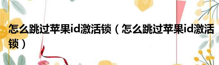 怎么跳过苹果id激活锁(怎么跳过苹果id激活锁)