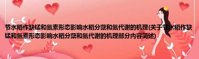 节水稻作缺锰和氮素形态影响水稻分蘖和氮代谢的机理(关于节水稻作缺锰和氮素形态影响水稻分蘖和氮代谢的机理部分内容简述)
