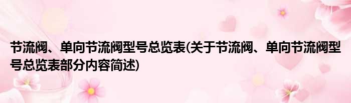 节流阀、单向节流阀型号总览表(关于节流阀、单向节流阀型号总览表部分内容简述)