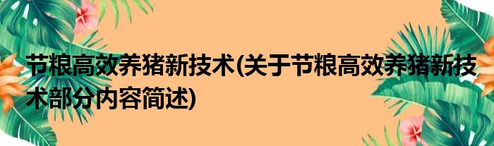 节粮高效养猪新技术(关于节粮高效养猪新技术部分内容简述)