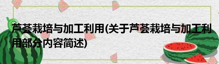 芦荟栽培与加工利用(关于芦荟栽培与加工利用部分内容简述)