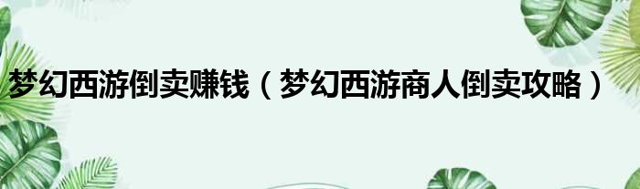 梦幻西游倒卖赚钱(梦幻西游商人倒卖攻略)