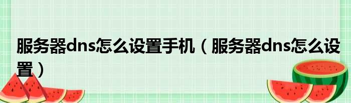 服务器dns怎么设置手机(服务器dns怎么设置)
