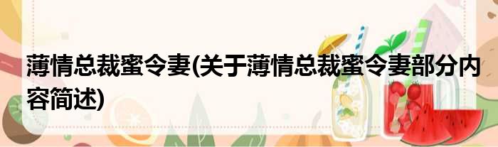 薄情总裁蜜令妻(关于薄情总裁蜜令妻部分内容简述)