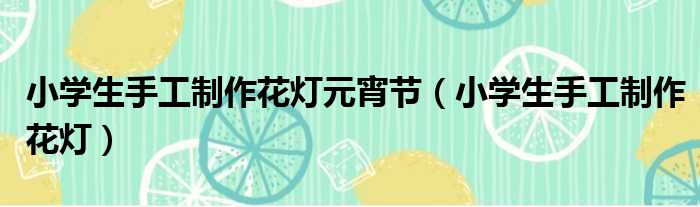 小学生手工制作花灯元宵节(小学生手工制作花灯)