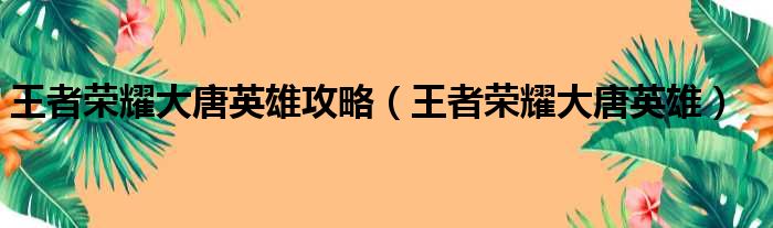 王者荣耀大唐英雄攻略(王者荣耀大唐英雄)