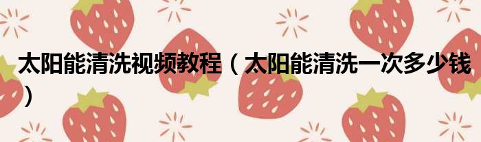 大家好,小活来为大家解答以上问题。太阳能清洗视频教程,太阳能清洗一次多少钱很多人还不知道,现在让我们一起来看看吧!