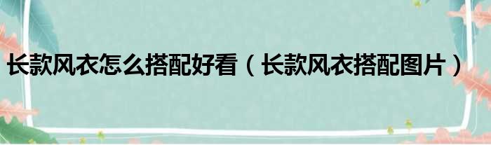大家好,小活来为大家解答以上问题。长款风衣怎么搭配好看,长款风衣搭配图片很多人还不知道,现在让我们一起来看看吧!