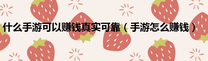 什么手游可以赚钱真实可靠(手游怎么赚钱)