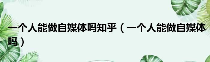 一个人能做自媒体吗知乎(一个人能做自媒体吗)