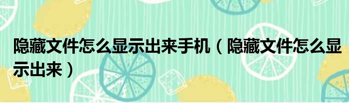 隐藏文件怎么显示出来手机(隐藏文件怎么显示出来)