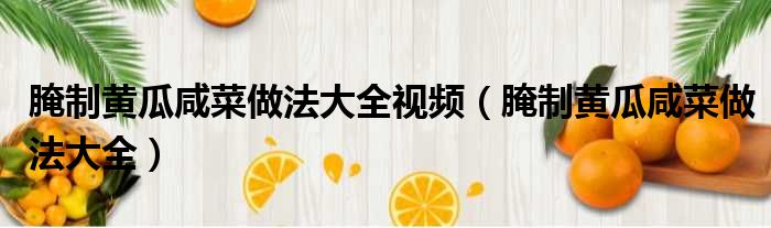 腌制黄瓜咸菜做法大全视频(腌制黄瓜咸菜做法大全)