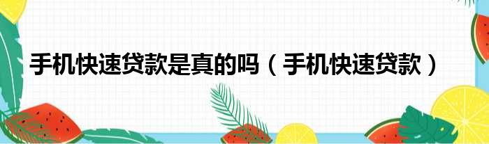 导读 大家好,小活来为大家解答以上问题。手机快速贷款是真的吗,手机快速贷款很多人还不知道,现在让我们一起来看看吧!1、首先,我们需要在手