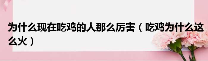 为什么现在吃鸡的人那么厉害(吃鸡为什么这么火)