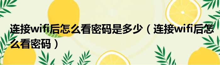 连接wifi后怎么看密码是多少(连接wifi后怎么看密码)