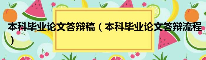 本科毕业论文答辩稿(本科毕业论文答辩流程)
