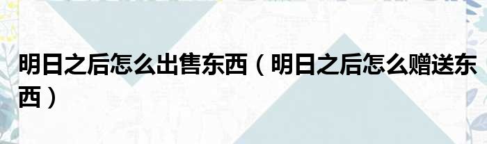 明日之后怎么出售东西(明日之后怎么赠送东西)