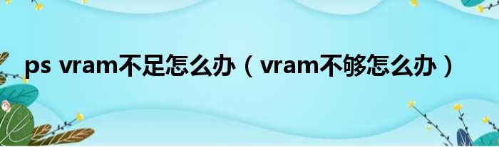 大家好,小活来为大家解答以上问题。ps vram不足怎么办,vram不够怎么办很多人还不知道,现在让我们一起来看看吧!