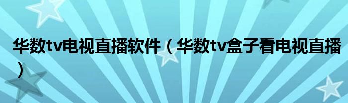 华数tv电视直播软件(华数tv盒子看电视直播)