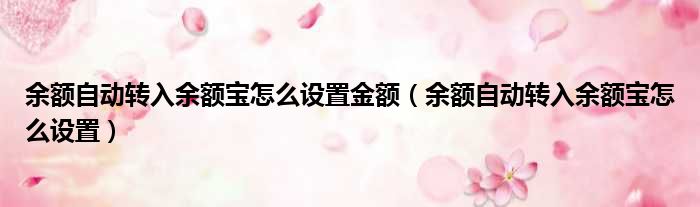 余额自动转入余额宝怎么设置金额(余额自动转入余额宝怎么设置)