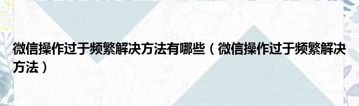 微信操作过于频繁解决方法有哪些(微信操作过于频繁解决方法)