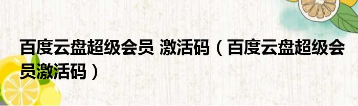 百度云盘超级会员 激活码(百度云盘超级会员激活码)