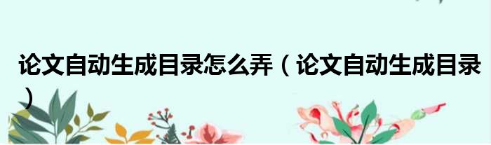 大家好,小活来为大家解答以上问题。论文自动生成目录怎么弄,论文自动生成目录很多人还不知道,现在让我们一起来看看吧!
