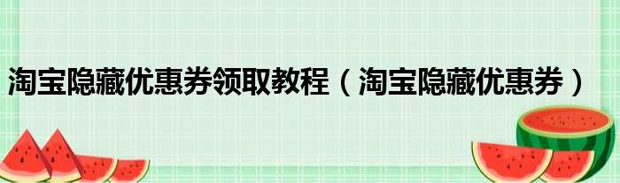淘宝隐藏优惠券领取教程(淘宝隐藏优惠券)