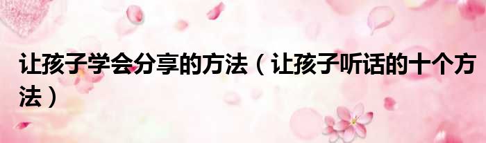 让孩子学会分享的方法(让孩子听话的十个方法)