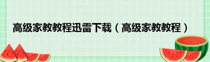 大家好,小活来为大家解答以上问题。高级家教教程迅雷下载,高级家教教程很多人还不知道,现在让我们一起来看看吧!