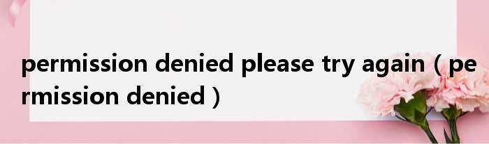 导读 大家好,小活来为大家解答以上问题。permission denied please try again,permission denied很多人还不知道,现在让我们一起来看看吧