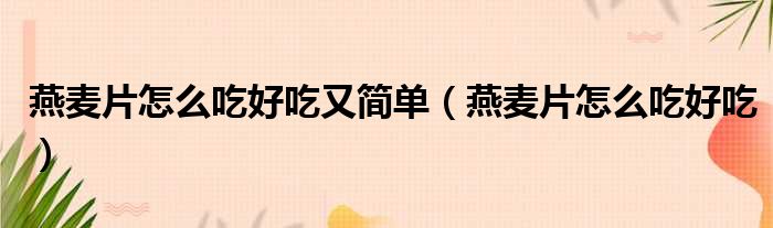 燕麦片怎么吃好吃又简单(燕麦片怎么吃好吃)