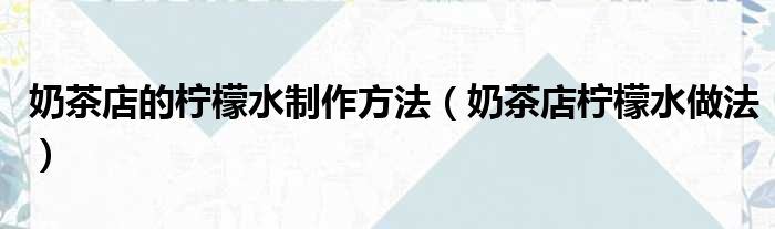 奶茶店的柠檬水制作方法(奶茶店柠檬水做法)