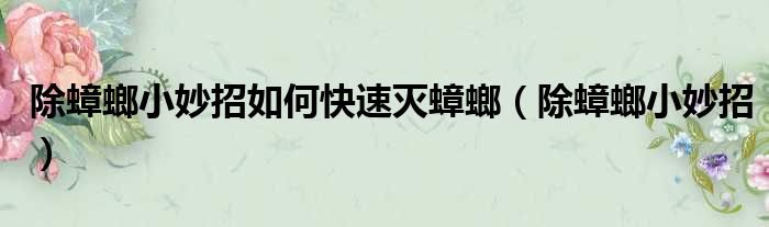 除蟑螂小妙招如何快速灭蟑螂(除蟑螂小妙招)