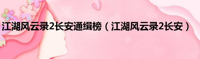 江湖风云录2长安通缉榜(江湖风云录2长安)