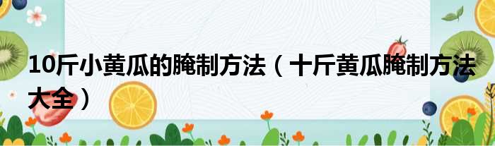 10斤小黄瓜的腌制方法(十斤黄瓜腌制方法大全)