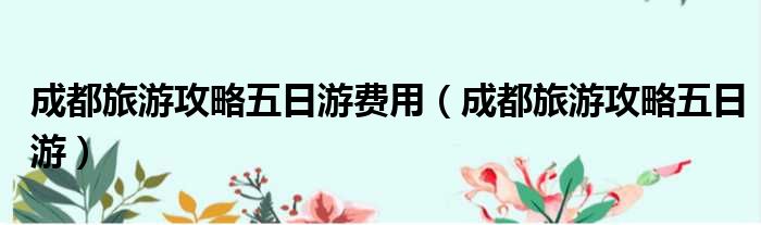 成都旅游攻略五日游费用(成都旅游攻略五日游)