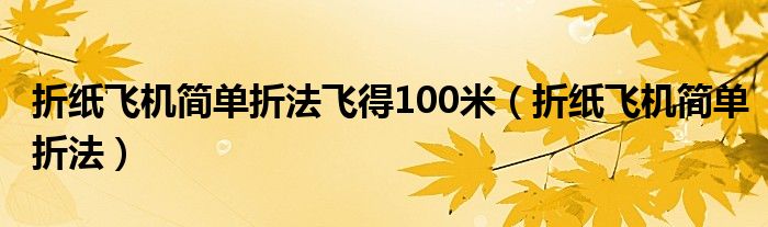 折纸飞机简单折法飞得100米(折纸飞机简单折法)