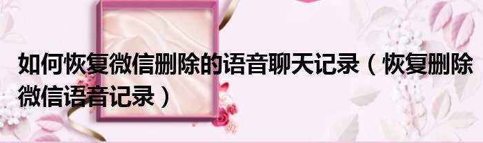 如何恢复微信删除的语音聊天记录(恢复删除微信语音记录)