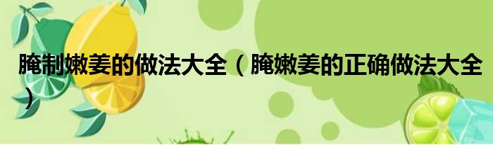 腌制嫩姜的做法大全(腌嫩姜的正确做法大全)
