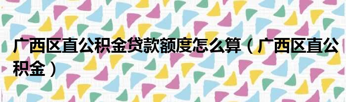 广西区直公积金贷款额度怎么算(广西区直公积金)