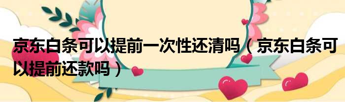 京东白条可以提前一次性还清吗(京东白条可以提前还款吗)