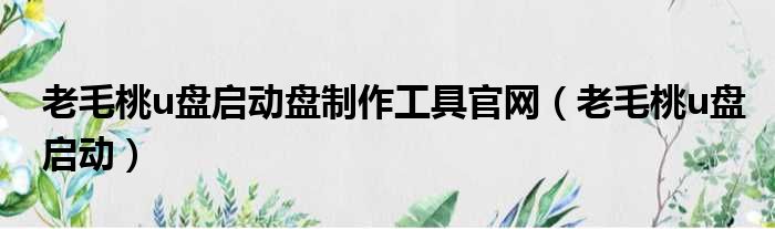 老毛桃u盘启动盘制作工具官网(老毛桃u盘启动)