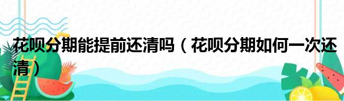 花呗分期能提前还清吗(花呗分期如何一次还清)