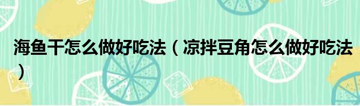 海鱼干怎么做好吃法(凉拌豆角怎么做好吃法)