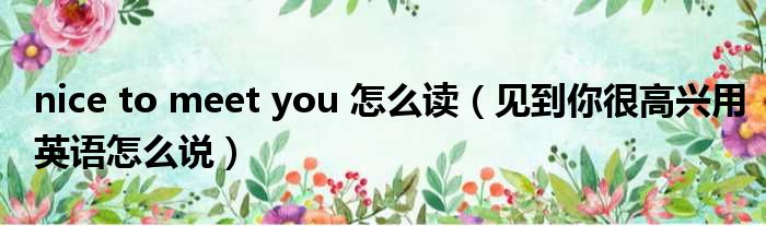 nice to meet you 怎么读(见到你很高兴用英语怎么说)